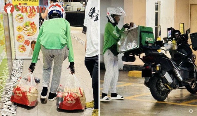 "Pengemudi Grab ini memutuskan bahwa cara terbaik untuk mengangkut banyak kantong makanan adalah dengan menyeretnya sampai ke motornya," kata Dan.