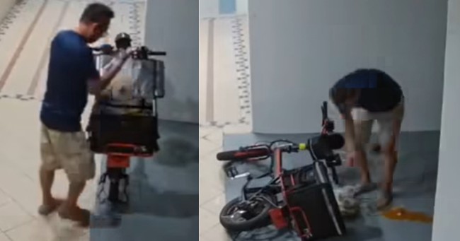 Pada kamera pengawas yang terpasang di bagian rumahnya, terlihat jelas pengemudi yang baru tiba. Di bagian belakang sepedanya tampak kotak khusus untuk menjaga kehangatan makanan milik pelanggan.