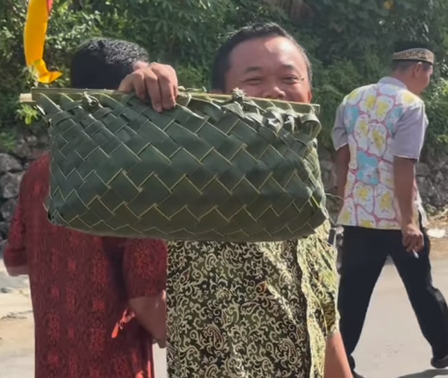 Bagian ujung atasnya sebagian ujung daun kelapa juga tampak diikat dengan kencang. Banyak netizen yang menyebut tradisi ini sebagai salah satu bentuk ekonomi hijau yang sedang digadang-gadang oleh pemerintah.