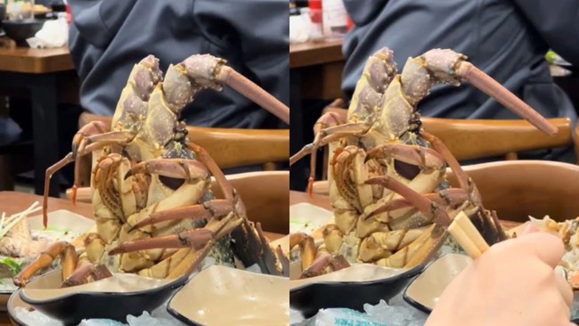 "Wow, makan lobster hidup," ujar pelanggan yang merekam.