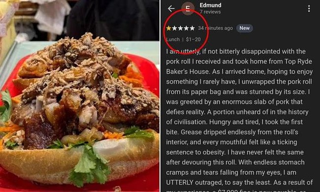 Toko roti populer di Sydney, Top Ryde Baker's House, mendadak viral usai mendapat ulasan bintang satu dari seorang pelanggan aneh bernama Edmund.