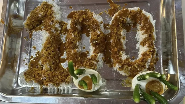 Mengandalkan kreativitas, penyajian nasi kandar 'edisi khusus' ini sampai menarik perhatian netizen di Facebook. Nasi kandar tersebut disusun dengan bentuk angka 100 yang melambangkan 100 tahun usia Mahathir Mohamad.