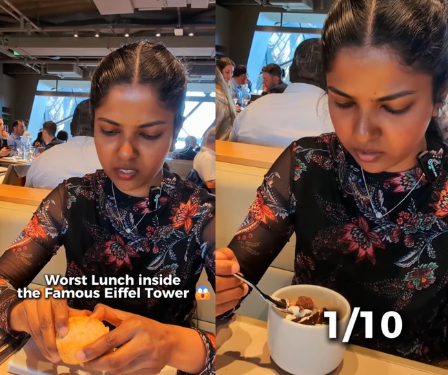 Melalui unggahan video pada akun @_maketraveleasy pada Rabu, (6/8), wanita India bernama Ishawarya menunjukkan pengalamannya pertama kali makan di restoran Eiffel Tower.
