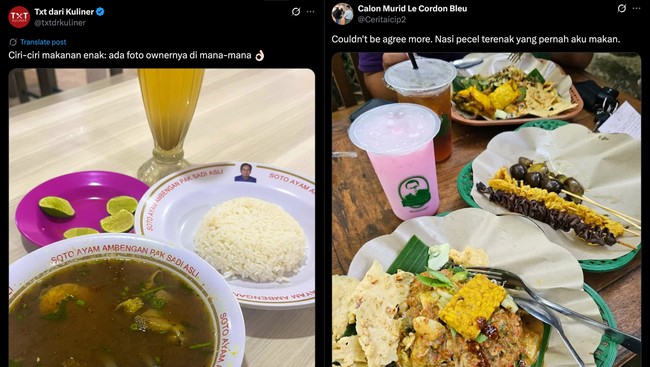 Dalam sebuah unggahan di media sosial, netizen ramai mengungkap ciri-ciri tempat yang makanannya sudah pasti enak. Salah satu tandanya ketika ada foto si pemilik.