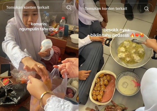Seperti yang dibagikan oleh sebuah video di akun TikTok @seventhory (23/9). Dalam video tersebut para siswi SMA tengah mengumpulkan menu tahu dari MBG milik satu kelas.