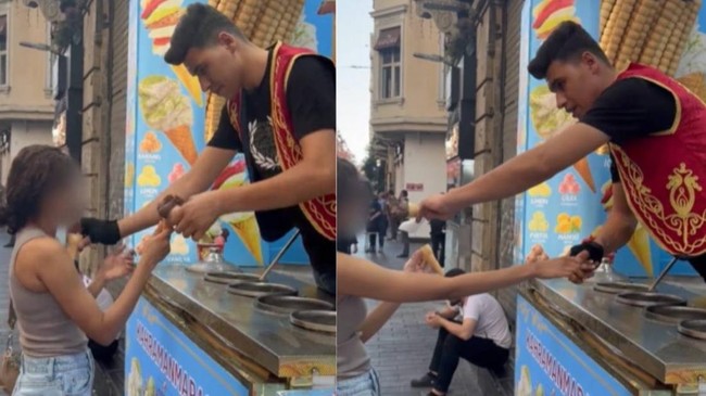 Atraksi saat membeli es krim turki walaupun menyebalkan tetapi banyak diburu turis. Namun ada kejadian tak menyenangkan yang dialami seorang turis saat membeli es krim di Beyoglu, Istanbul, Turki.