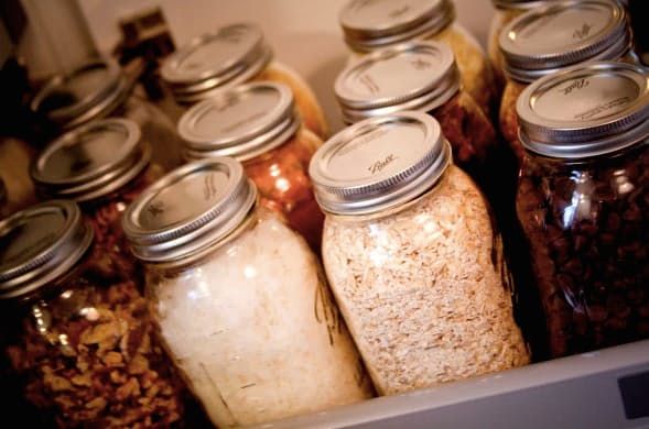 Stoples kaca atau mason jar menjadi salah satu pilihan populer untuk menyimpan makanan tanpa plastik. Wadah ini tersedia dalam berbagai ukuran dan relatif terjangkau. Selain membeli baru, orang-orang juga bisa memanfaatkan kembali botol kaca bekas makanan yang sudah dibersihkan dengan menyeluruh.