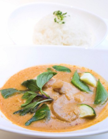 - Sayur kari merah (minyak canola, santan rendah lemak, tahu, ubi, kaldu sayuran, buncis, brown sugar, perasan jeruk nipis, daun ketumbar)