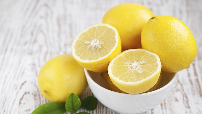 Dalam 100 g lemon mengandung 57 kal energi, 1 g protein, 11,1 g karbohidrat, 0,9 g lemak, dan 0,26 mg zat besi. Kandungan zat besi dan vitamin C pada lemon membantu menyembuhkan penyakit radang gusi dan sariawan.