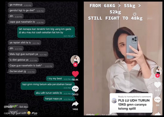Berbagai kisah diet di yang dibagikan di media sosial begitu menginspirasi. Tak terkecuali milik Malinda Rheaven yang ia unggah di akun TikTok @mirandakher.
