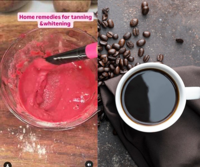 Dalam video Instagram @juju_saiyad dan @jujucare0000 di India terlihat campuran berbahan buah bit, bubuk kopi, tepung gandum (atta) dan tepung kacang (besan). Campuran ini dibuat menjadi pasta yang dioleskan ke kulit.