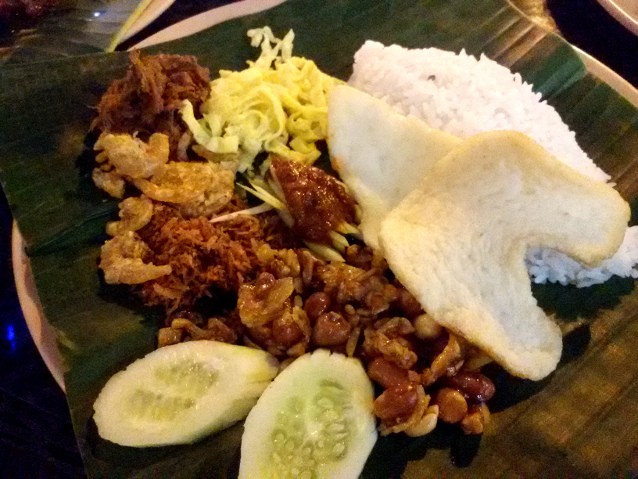 Di antara rasa gurih dan manis, sambal mangga yang pedas dan segar jadi pelengkap pas nasi rames ini. Ada rasa pedas menggigit dan renyah segar irisan mangga muda. Kerupuk udangpun melengkapi sajian nasi langgi ini.