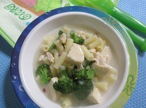 Sajian berkuah hangat dengan pasta makaroni ini sangat mudah dibuat. Dicampurkan dengan susu, kaldu, daging ayam dan tahu serta brokoli membuat sup ini lengkap nutrisi. Seporsi sajian ini mengandung protein, kalsium serta vitamin dan mineral yang sangat baik untuk kesehatan sikecil. Untuk membuatnya lihat resepnya di sini.Â
