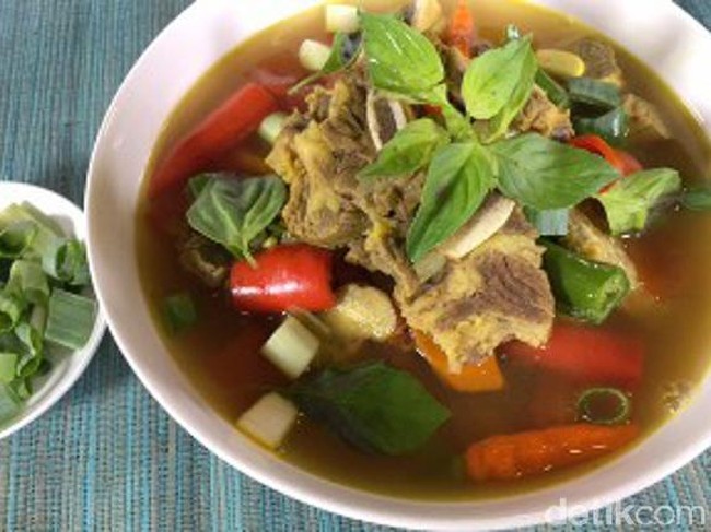 Selain pempek, Palembang punya hidangan pindang tulang iga sapi. Kuahnya bening dengan paduan rempah segar. Semakin enak karena dipadukan dengan cabe yang pedas menyengat.