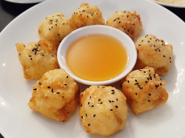 Bola-bola udang yang gurih renyah selalu jadi favorit. Apalagi ditambah wijen yang harum dan dicocol saus madu yang legit asam. Dijamin ketagihan.