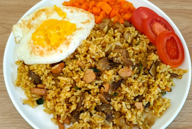 Nasi goreng merupakan makanan comfort food. Selain enak, nasi goreng juga mudah dibuat, sehingga cocok untuk menu sahur. Kamu bisa membuat nasi goreng daging dengan bumbu kari yang gurih sedap.