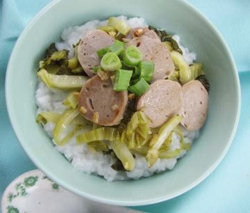 - Taruh bubur di mangkuk saji. Beri bahan Taburan.