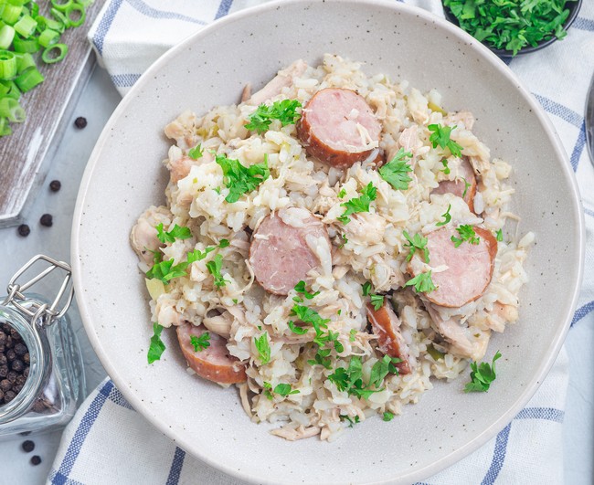 Cukup gunakan rice cooker. Beras pulen, bumbu, kaldu dengan isian ayam dan sosis bisa dimasak sekaligus. Bahkan bisa dimasak malam sebelumnya. Pagi tinggal menyajikan.