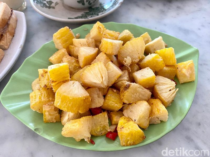 Selain nasi lemak, ada juga camilan gurih seperti Singkong Tumis Cabe garam (Rp 15.000) yang tak kalah enak untuk teman ngopi.