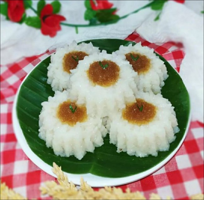 | 1. | Kukus kelapa beri garam sejumput dan aduk dengan gula merah yang sudah dicairkan. |