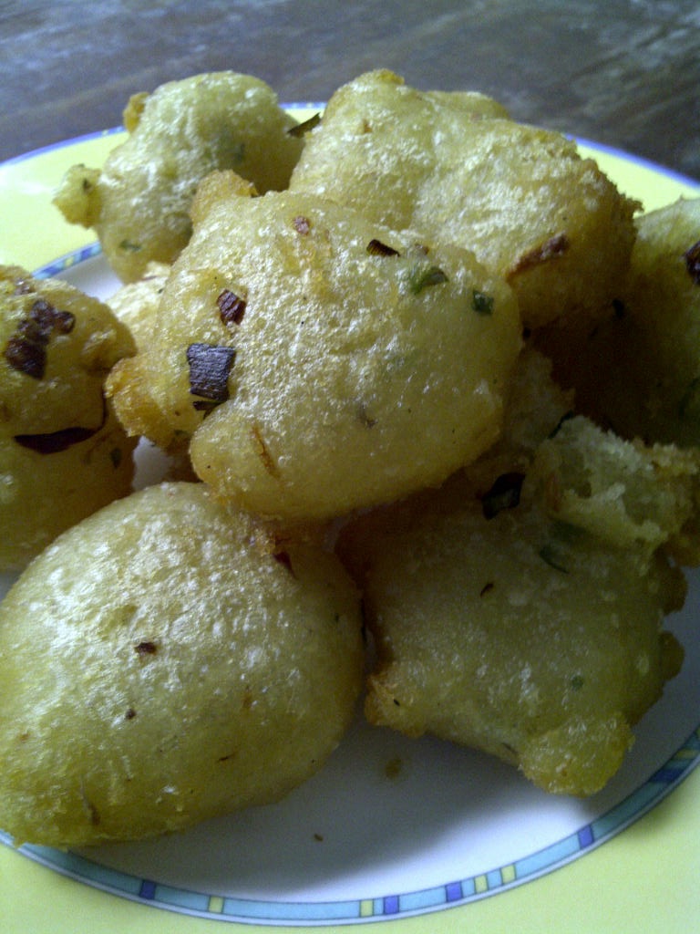 - Bentuk dengan sendok makan, goreng dengan api sedang hingga berwarna kecoklatan.