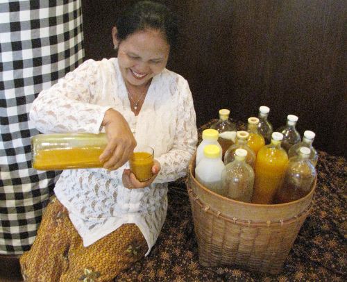Baru melangkah masuk saya sudah melihat seorang mbok jamu sedang meracik minuman jamu tradisional, seperti kunyit asem, beras kencur, jahe, daun sirih, dll. Teman saya yang pencinta jamu langsung bergegas memesan segelas beras kencur yang langsung diracik si mbok jamu dengan lihai.