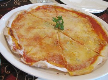 Tak lama pizza berdiameter 30cm sudah tersaji di hadapan saya. Pizza Bianco ini memakai topping spicy tomaco sauce dan diatasnya terdapat lelehan keju mozarella. Dough-nya benar-benar super tipis sehingga pinggirannya hmm... kriuk-kriuk enak. Belum lagi saat menggigit bagian topping-nya, wah... asam segar saus tomat dan sedikit pedas berpadu serasi dengan gurihnya keju serasa meleleh di dalam mulut. Nyam nyam... gurih renyah uenaaak!