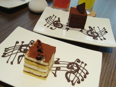 menunggu sebentar untuk dihangatkan kembali. Sedangkan petit four tiramisu tersaji dalam piring-piring kecil bersama stawberry jus yang berembun. Nyam... sepotong tiramisu yang berselang seling dengan krim langsung lenyap di dalam mulut. Dessert Italia versi Chef's Kitchen ini ternyata bukan terbuat dari lapisan biskuit savoiardi atau lady's finger, melainkan lebih mirip seperti sponge cake lapis. Untuk krimnya juga tidak menggunakan keju mascarpone, sehingga menurut saya rasanya kurang 'nendang' seperti layaknya tiramisu Italia.