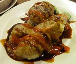 Namun dugaan saya ternyata salah. Kacang merah yang digunakan adalah kacang azuki atau kacang meraj Jepang. Rasanya tidak legit, meskipun cukuplah saya terhibur dengan beberapa potong nangkanya. Melihat meja sebelah yang memesan siomay Bandung, saya kok jadi latah untuk memesan juga. Seporsi siomay saya pilih berisi siomay, tahu, dan telur untuk isinya.
