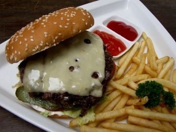 Begitu setangkup burger ini digigit, terasa komplet. Paduan antara daging juicy empuk, dengan keju leleh yang gurih enak, dan gherkin yang krenyes asam segar. Sensasi yang benar-benar komplet di mulut. Karena berukuran besar, pas mantapnya saat perut sedang lapar.