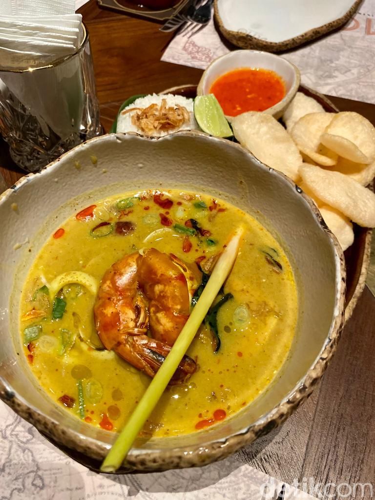 Kalau mau menyantap yang kuah-kuah bisa cicip Seafood Curry (Rp 180.000). Kuah karinya tak terlalu kental, tapi tetap enak karena paduan bumbu kari kuning dari santan yang pas dengan isian ikan cod, udang, cumi yang disajikan dengan nasi putih.