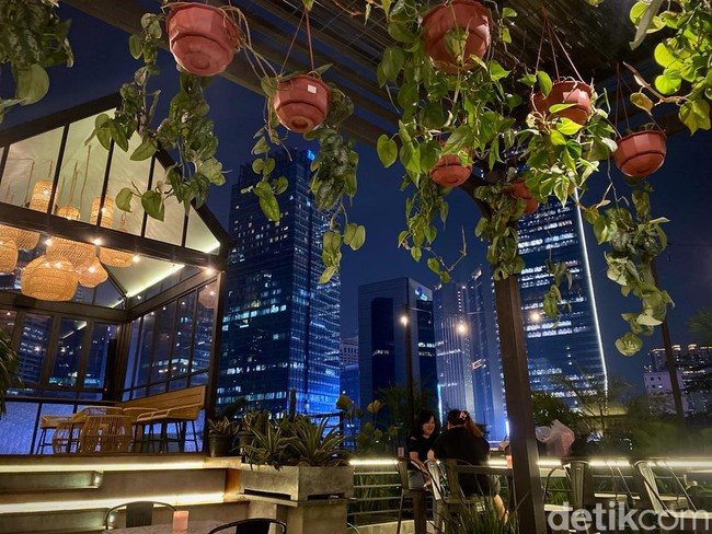 Selain itu, kafe rooftop tersebut juga dihiasi dengan berbagai tanaman hijau, sehingga memberikan suasana seperti tengah berada di kebun.