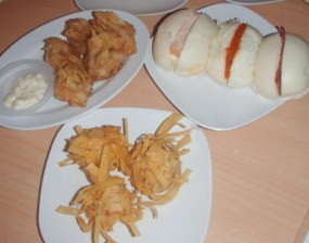 Mini sandwich sendiri merupakan bakpao yang dibentuk seperti roti mungil. Roti ini diiris bagian tengahnya dan diberi isian smoked chicken & mayonaise, smoked beef & cheese, atau chicken char siu. Meskipun pao nya sendiri empuk, namun sayang chicken char siew terasa agak hambar dengan cacahan ayam dan saus yang kurang nendang di lidah.
