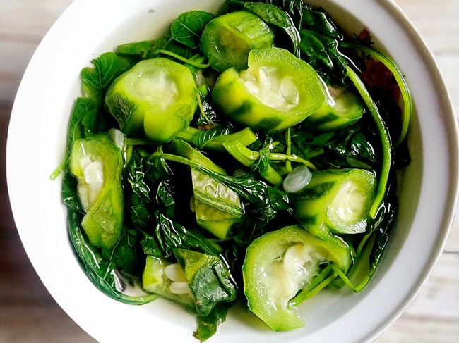 Sayur berkuah bening yang sederhana ini bisa jadi penetral usai konsumsi makanan bersantan atau gorengan. Berisi daun bayam dan oyong dengan bumbu sederhana.