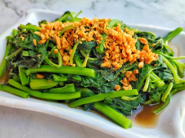 Bawang putih yang renyah wangi jadi jodoh enak buat kangkung yang segar renyah. |