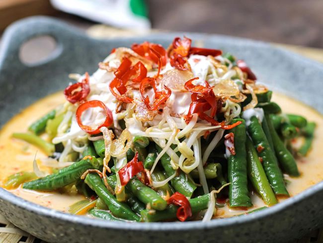 1. Selain kacang panjang bisa dipakai kecipir, kangkung atau pakis muda.
