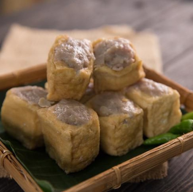 Tahu dengan isian adonan ayam ini rasanya semakin gurih karena digoreng. |