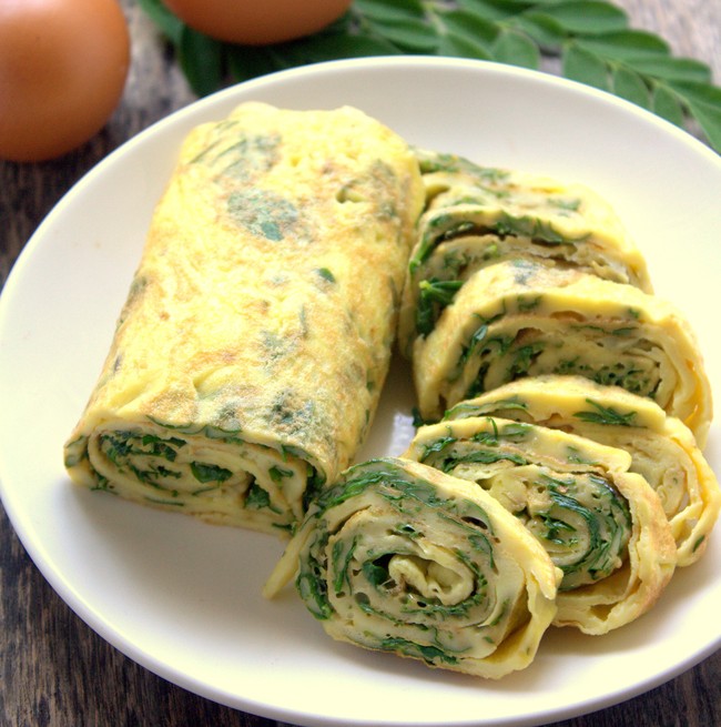 Tambahan daun kelor dan keju mmebuat omelet ini makin enak dan kaya nutrisi. |