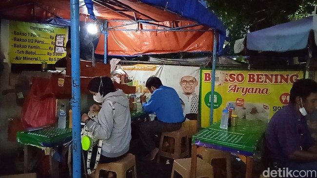 Namanya Bakso Bening Aryana yang dijajakan di atas gerobak sederhana dengan menempati bekas pos satpam di salah satu sudut pertokoan di Bogor. Menurut penjualnya, bakso di sini seringkali diburu penggemarnya hingga habiskan 8 kilogram daging sapi per hari.